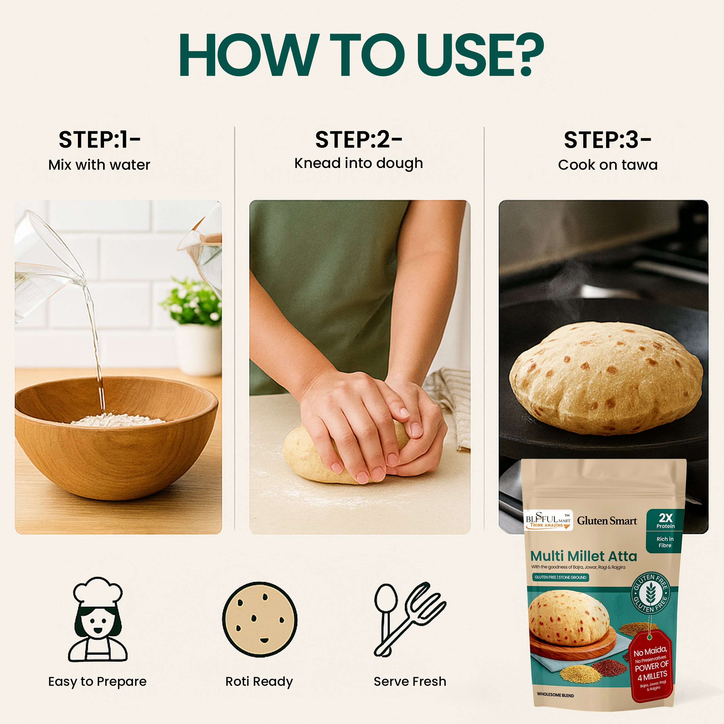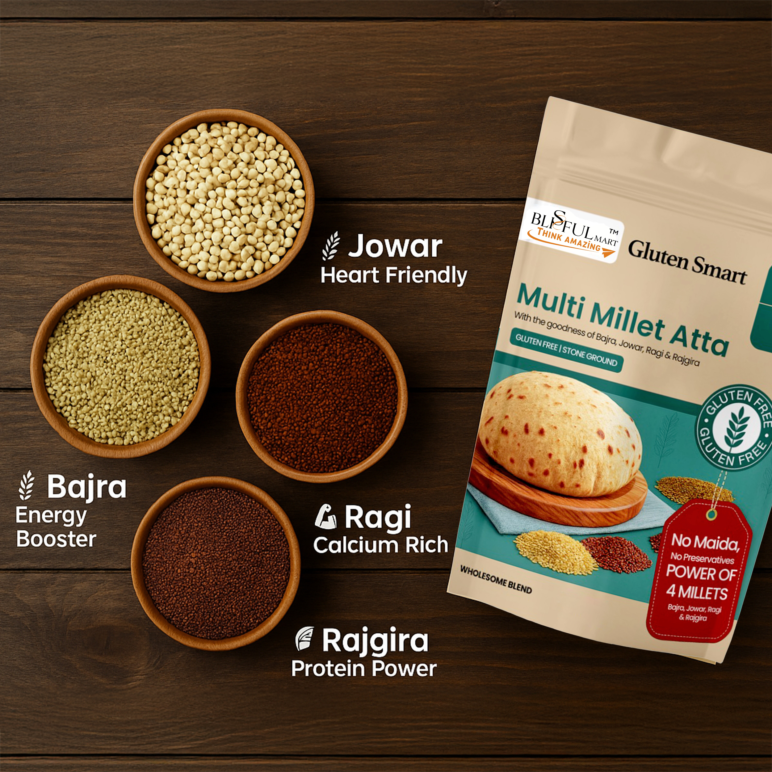 Premium Gluten Smart Multi Millet Atta – Nutrient Dense Wholesome Blend | High Protein & Fiber for Weight Management | Stone Ground Traditional Flour | Pure Goodness