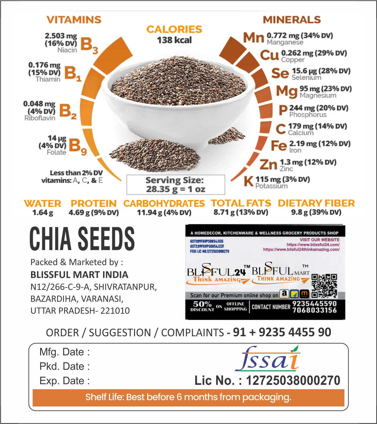 Supercharge Your Health with Nature’s Powerhouse Experience the “Pure Goodness” of BLISSFUL LIFE & PLANT NEEDS Premium Chia Seeds. These 100% natural, raw seeds are carefully selected to provide you with a concentrated source of essential nutrients. Known as a versatile superfood, our chia seeds are designed to integrate seamlessly into your daily routine—whether sprinkled on salads, blended into smoothies, or soaked for a refreshing pudding.