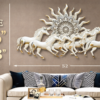 Enhance your interior with elegance and positive energy through the Blissful24 Carly 7 Horses Wall Art in medium size. This beautifully crafted metal décor features seven dynamic running horses beneath an intricately designed sun mandala, symbolizing power, progress, and success.