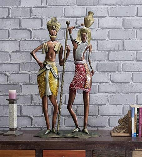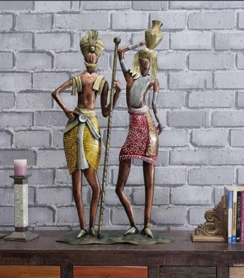 Celebrate the rich heritage of folklore and traditional artistry with the BLISSFUL24 PREMIUM Tribal Couple T.Decor (Code: TD025). This grand 33-inch sculpture captures a moment of cultural storytelling, expertly rendered in hand-finished iron.