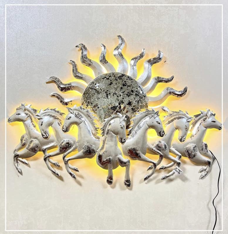 Invite success and dynamic energy into your space with the BLISSFUL24 PREMIUM Sun Horses Pearl White. This medium-format 45-inch wall installation is a masterwork of Vastu-inspired art, depicting seven galloping horses under a radiant sun. Finished in a sophisticated pearl white with textured metallic accents, this piece serves as a powerful symbol of progress and speed for modern luxury homes and corporate offices.