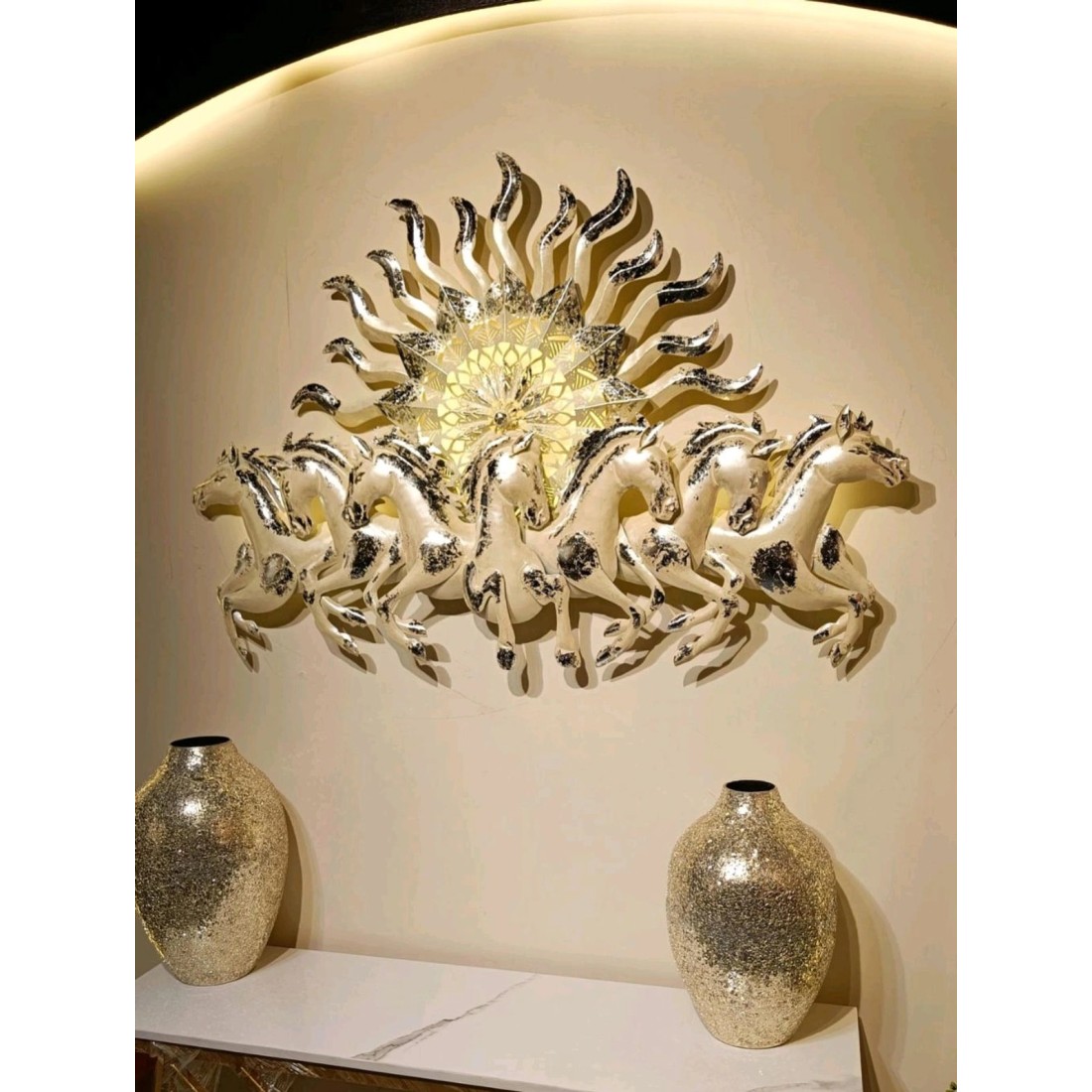 BLISSFUL24 PREMIUM Artisan Hand-Finished Vastu Sun Horses MuralBLISSFUL24 PREMIUM Artisan Hand-Finished Vastu Sun Horses Mural