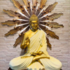 Infuse your home with spiritual warmth and sophisticated luxury with the BLISSFUL24 PREMIUM Sun Shine Flower Decor (Small). This exquisite wall-mounted or shelf-based sculpture features a seated Budha framed by a majestic sunburst, designed to serve as a luminous focal point for premium interiors.