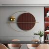 Crafted from a high-quality mix of Iron, Stainless Steel (SS), and MDF, the Banofee Decor features a unique fluted circular panel in a deep, warm burgundy tone. This textured centerpiece is balanced by a minimalist golden ring and a polished gold sphere, all intersected by a sleek horizontal bar. Its clean lines and architectural depth make it an ideal choice for dining areas, modern living rooms, or executive suites.