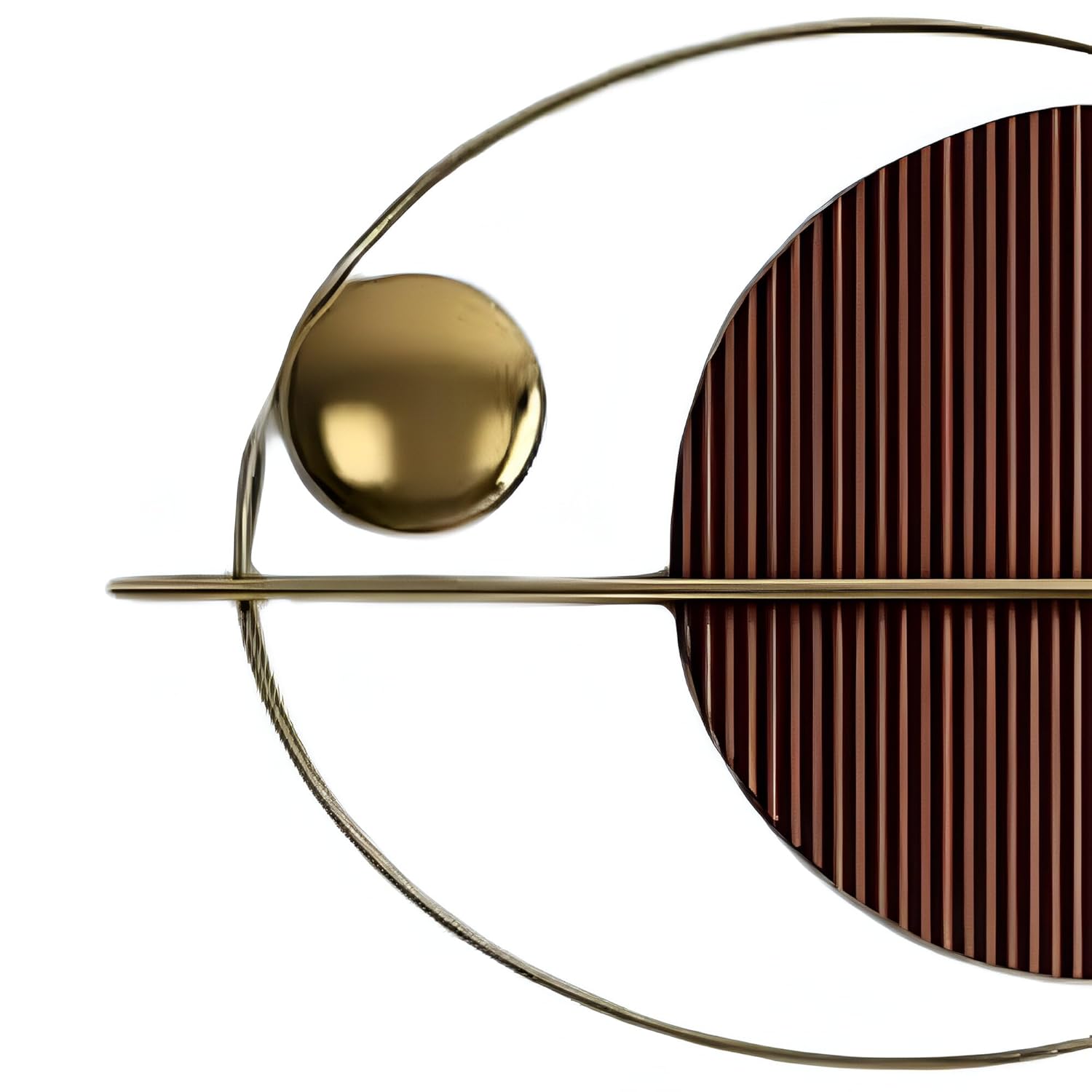 Crafted from a high-quality mix of Iron, Stainless Steel (SS), and MDF, the Banofee Decor features a unique fluted circular panel in a deep, warm burgundy tone. This textured centerpiece is balanced by a minimalist golden ring and a polished gold sphere, all intersected by a sleek horizontal bar. Its clean lines and architectural depth make it an ideal choice for dining areas, modern living rooms, or executive suites.