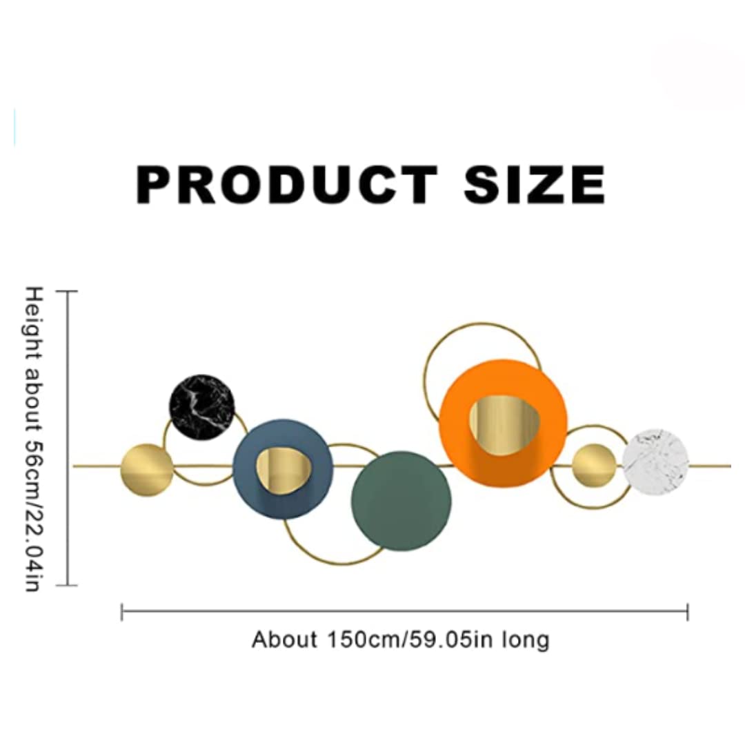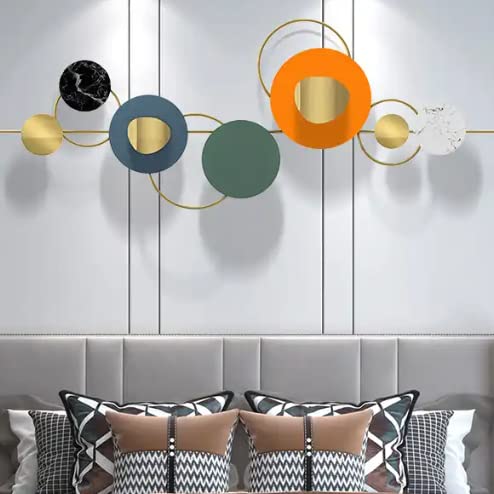The “Bougatsa” design is a sophisticated composition of interlocking circular discs in a curated palette of bright orange, deep teal, and forest green, accented by luxurious marble textures and shimmering gold centers. Meticulously engineered from a premium blend of Iron, Stainless Steel (SS), and PDF, this piece offers a multi-layered, three-dimensional aesthetic that brings life and movement to contemporary interiors.
