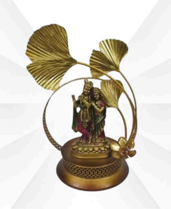 Celebrate the divine union of love and spirituality with the BLISSFUL24 PREMIUM Radha Krishna Leaf Ring. This magnificent 23-inch sculpture captures the essence of eternal devotion, framed by a striking botanical canopy that brings a touch of nature-inspired opulence to your luxury interior.