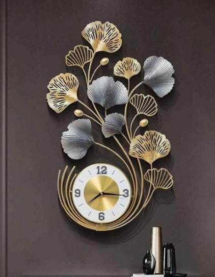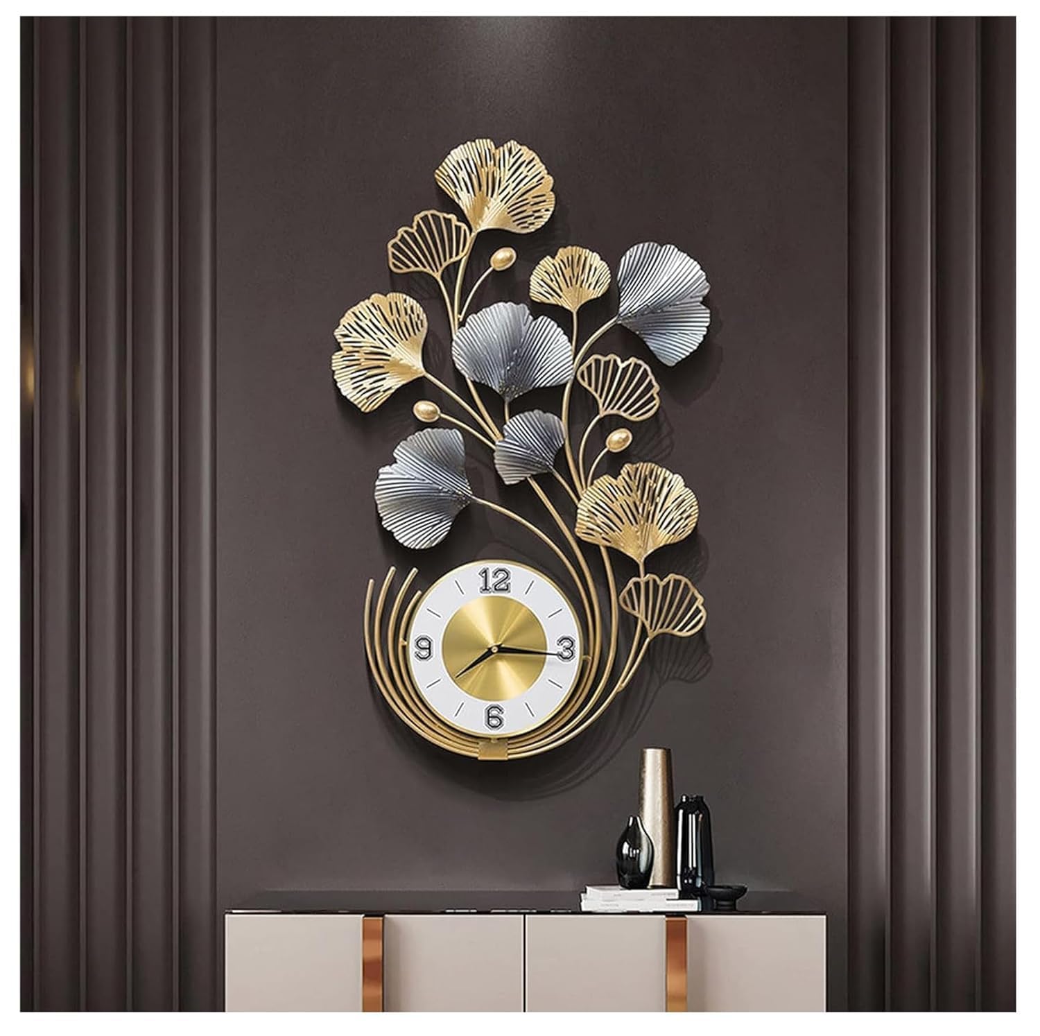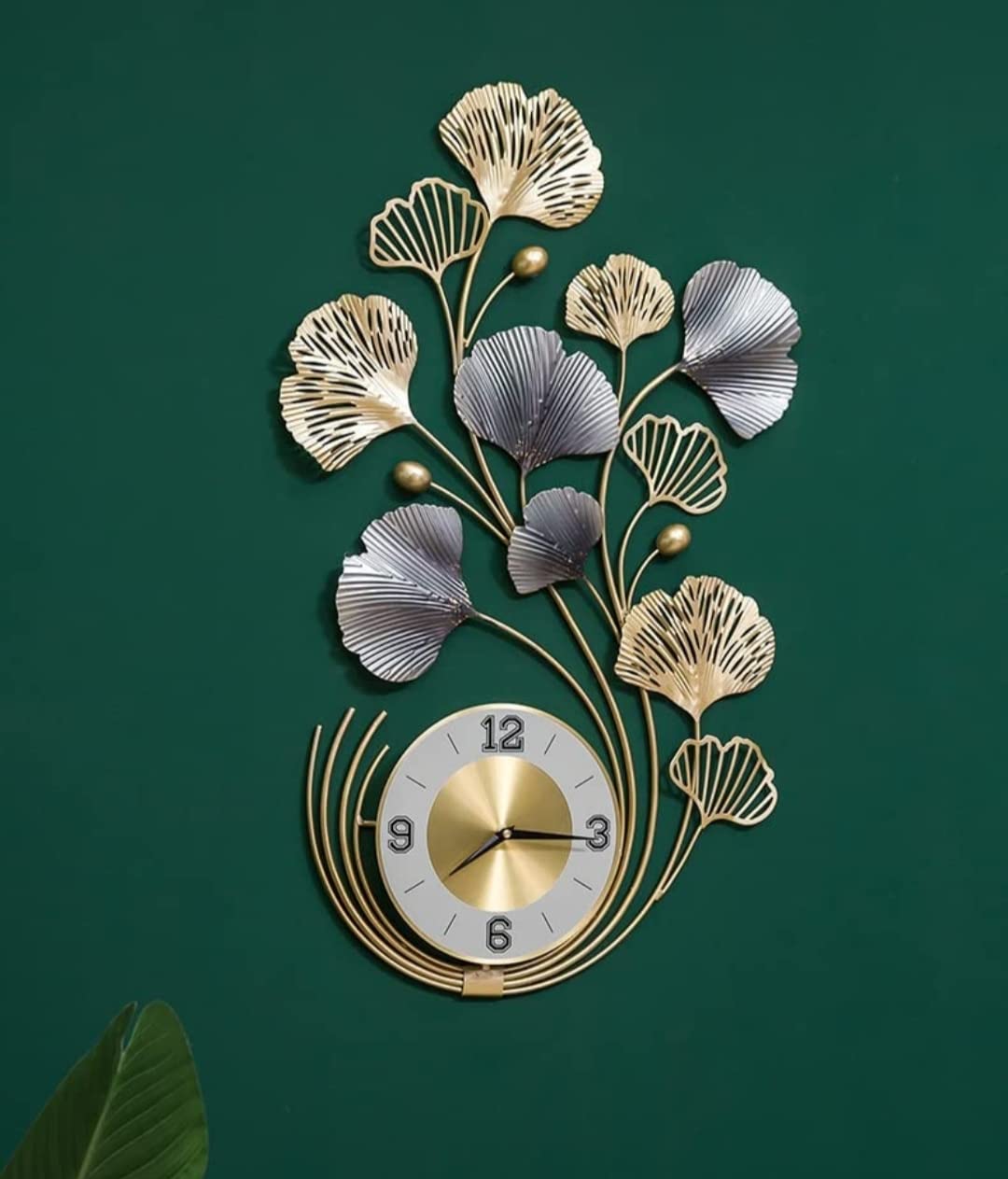 Artistic Ginkgo Ascent: Features a stunning vertical arrangement of metallic ginkgo leaves that appear to “grow” upward from the clock face.