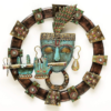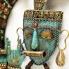 Exquisite Teal & Bronze Palette: Features a sophisticated teal-toned face of Lord Krishna, beautifully contrasted by an antique bronze geometric frame.