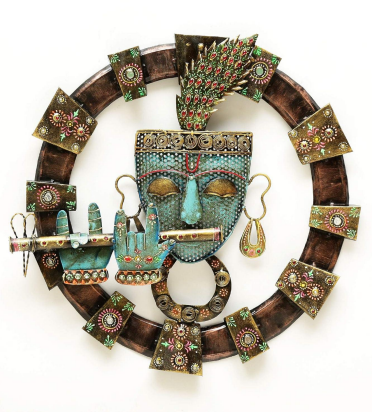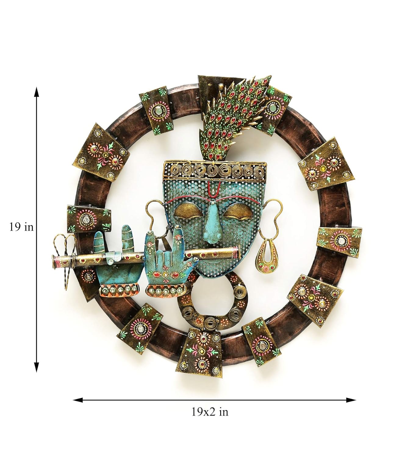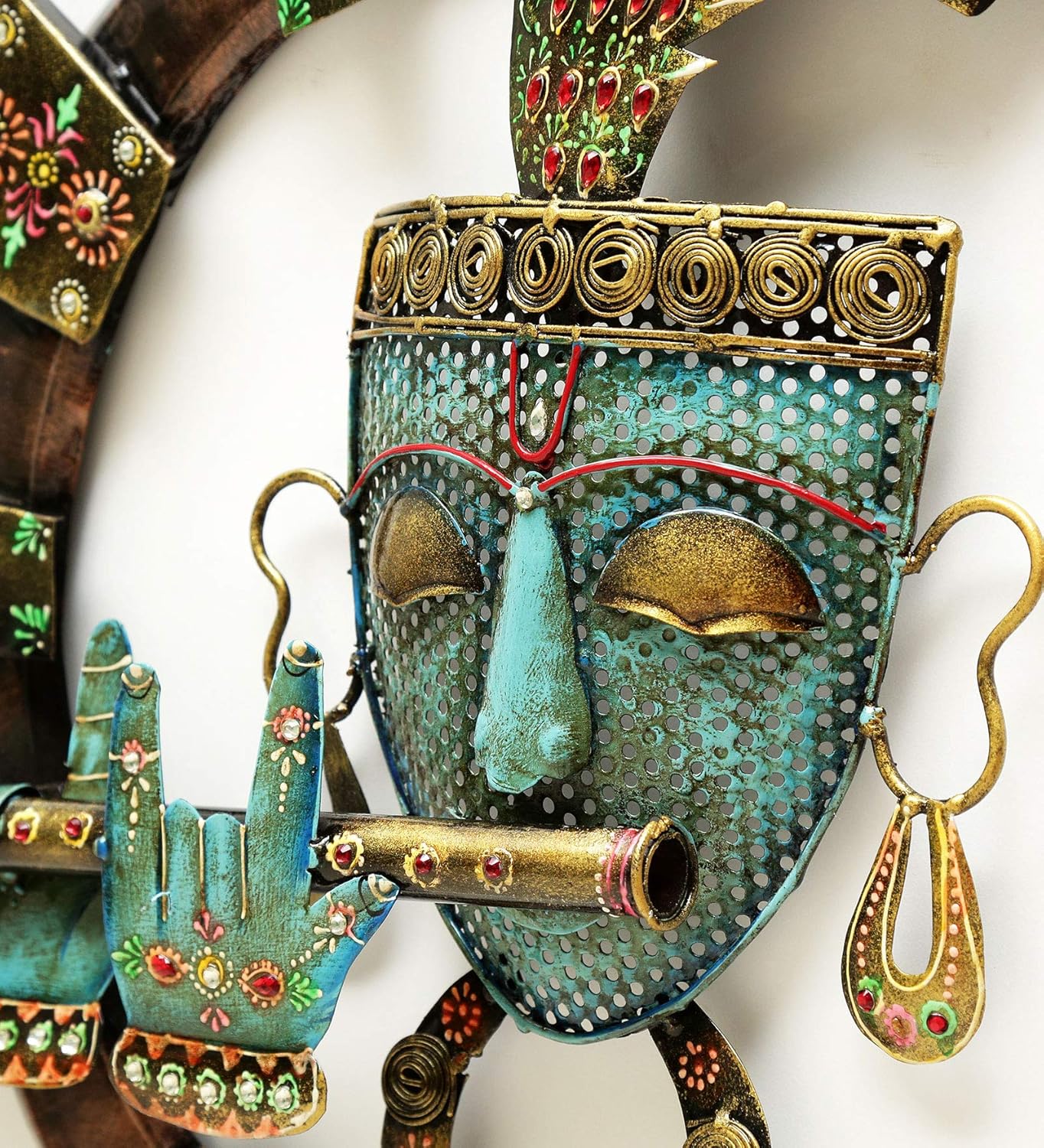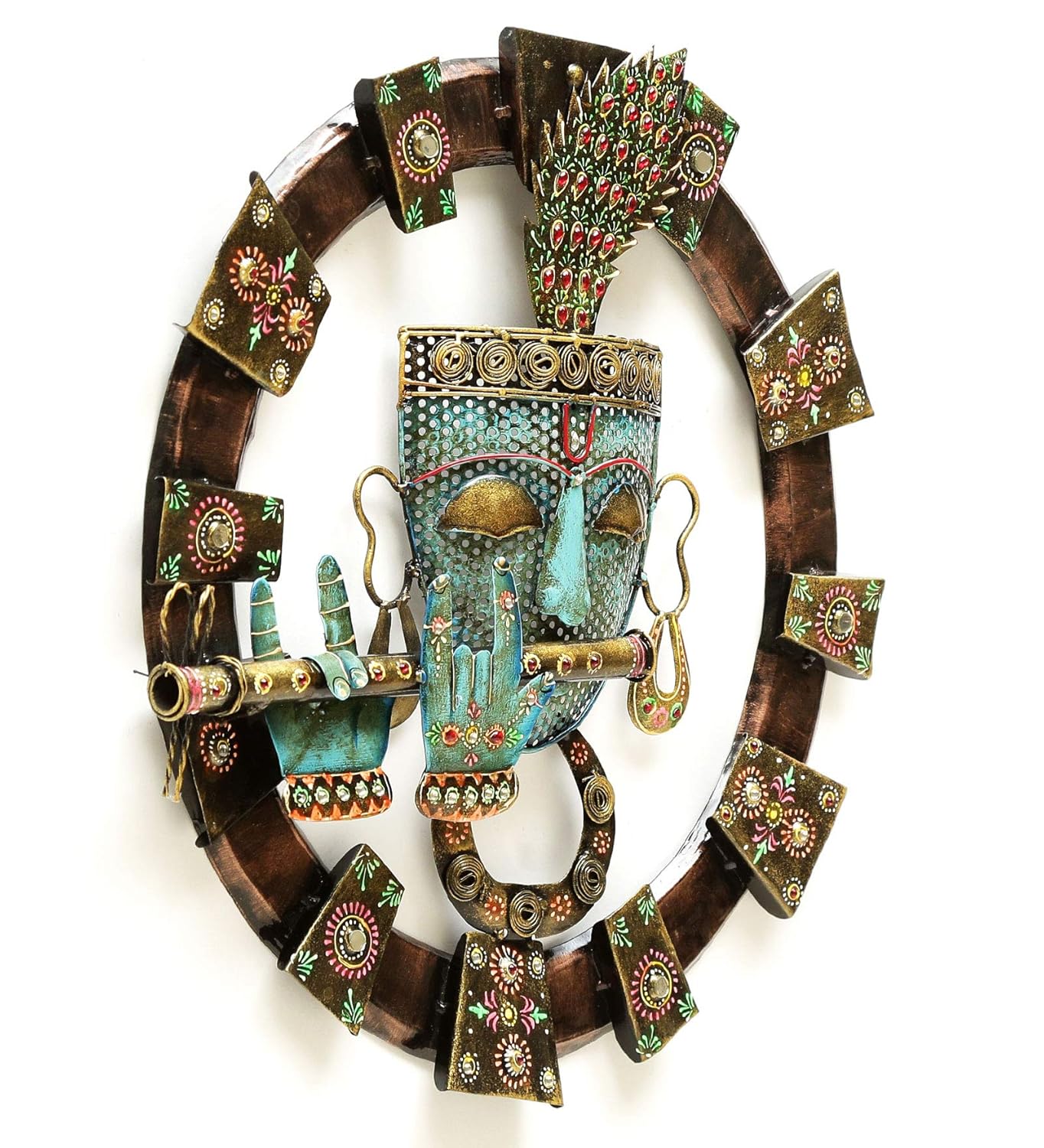 Bring a serene, divine presence to your home with the BLISSFUL24 PREMIUM Krishna Frame (W035 C). This artisan-crafted metal wall hanging showcases an intricate 3D depiction of Lord Krishna, distinguished by its unique teal and bronze color palette and highly detailed ornamental flourishes.