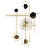 Symmetry & Balance: The design features strategically placed golden discs of varying sizes that provide a sense of orbital movement around the central clock.
