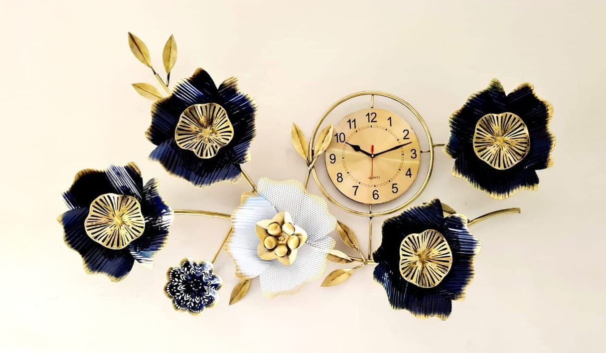 Infuse your home with a sense of royal sophistication and functional beauty with the BLISSFUL24 PREMIUM 4 Flower Time Black Décor. This expansive 45-inch horizontal masterpiece (Code: WD055A) serves as both a high-end wall sculpture and a precision timepiece, making it the perfect anchor for a modern living room or luxury suite.