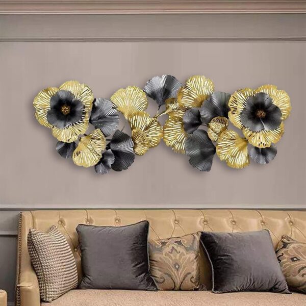 Sculptural Depth: A 3-inch profile depth allows the metallic petals and leaves to stand out, creating a dynamic three-dimensional relief with deep architectural shadows.