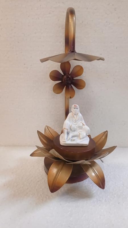 Create a serene pocket of divinity in your home or workspace with the BLISSFUL24 PREMIUM Flower Aashan (Mini) Decor. This 12-inch spiritual masterpiece captures the peaceful essence of Shirdi Sai Baba, presented within an elegant metallic floral framework that symbolizes devotion and purity.