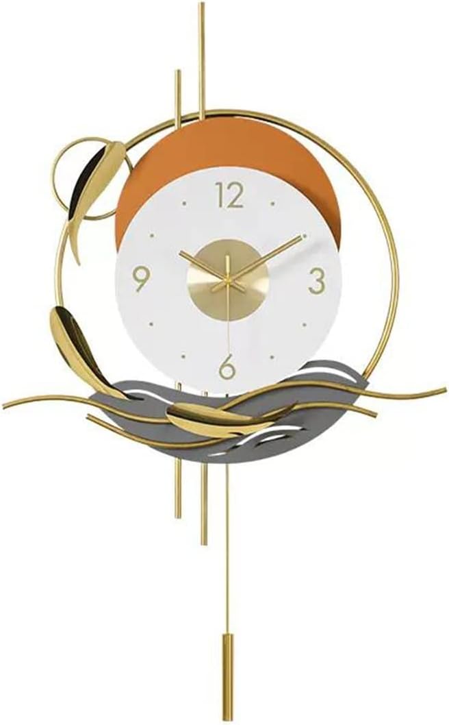 Minimalist Golden Pendulum: A sleek, rod-style pendulum extends from the base, adding a rhythmic and kinetic luxury to the wall mural.
