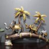 Tropical Botanical Accents: Two towering palm trees with shimmering, hand-finished golden leaves provide a lush, vertical backdrop to the scene.