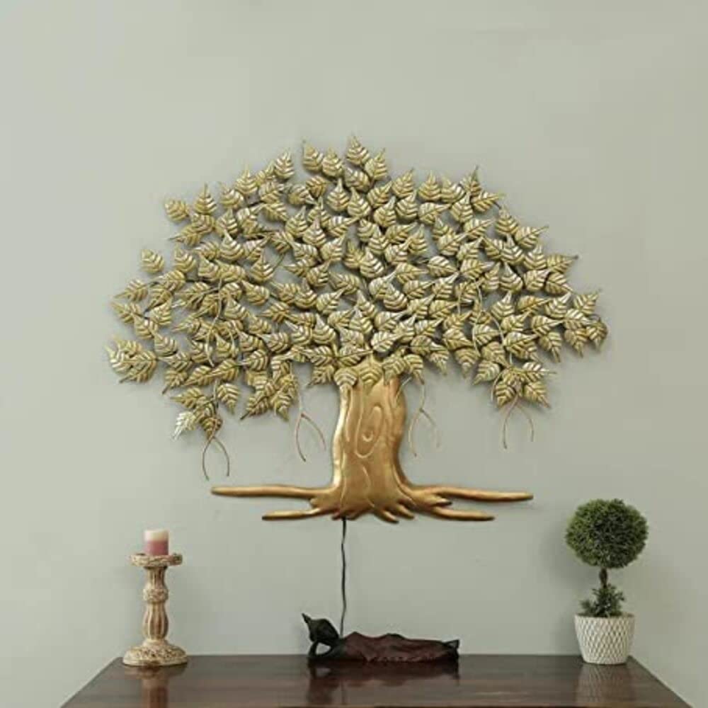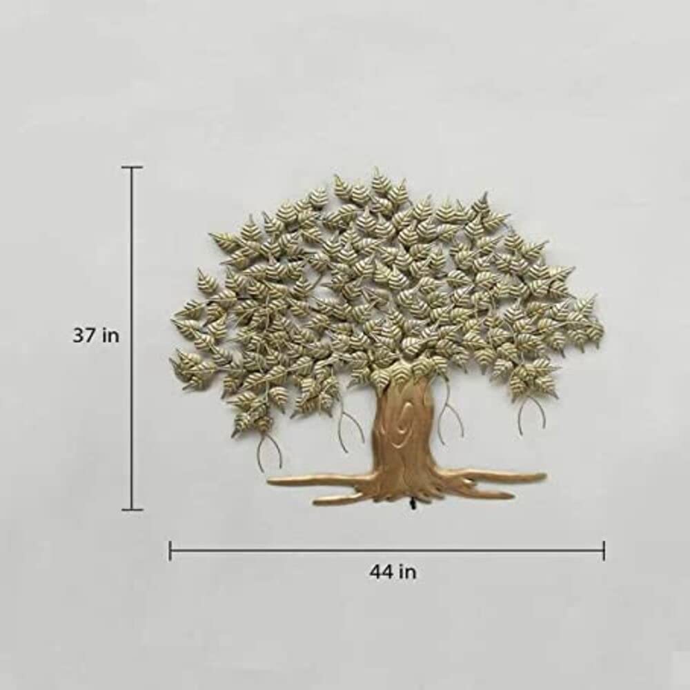 Intricate Golden Foliage: The expansive canopy is composed of hundreds of small, detailed metallic leaves finished in a shimmering antique gold.