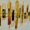 The design features a massive, circular marble-textured backdrop that anchors a rhythmic series of vertical metallic pillars. These bars, finished in a striking mix of polished gold and deep dark tones, create a 3D visual “soundwave” effect that adds depth and movement to your walls. Crafted from a premium blend of Iron and Stainless Steel (SS), this 59-inch wide sculpture is the perfect statement piece for grand living rooms, executive offices, or upscale hotel lobbies.