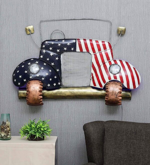 Industrial Craftsmanship: Built from high-quality metal, the piece features a textured mesh grille and realistic “headlight” accents, blending rugged automotive history with modern artistic flair.