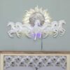 Blissful24 Sun Horses Pearl White Mini Metal Wall Art with LED Backlight (32×23 Inch)