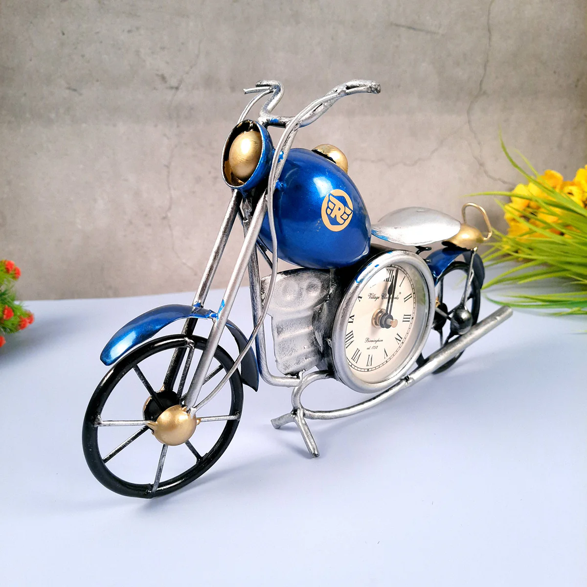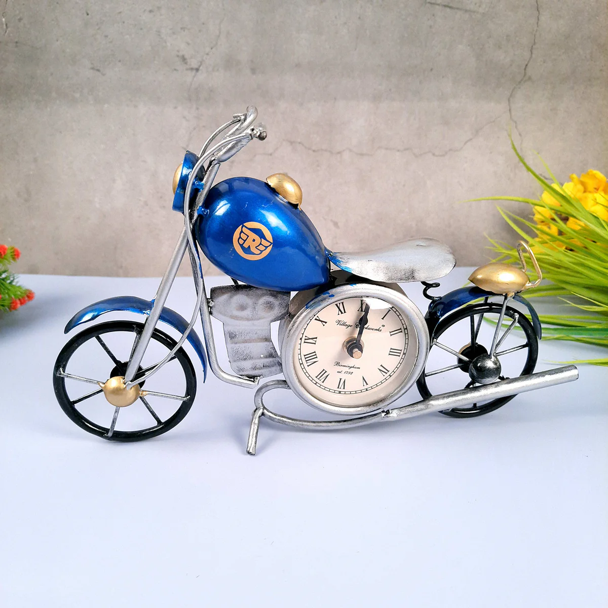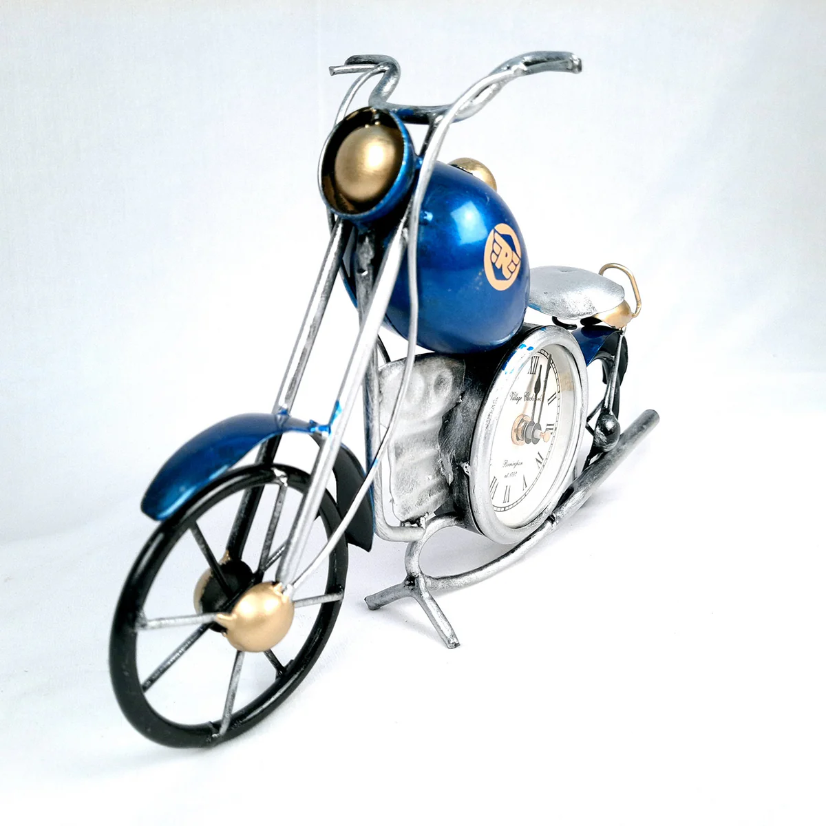 Enhance your interior décor with this Vintage Blue Bike Table Clock, designed in a classic motorcycle style with a refined metal finish. The elegant blue color combined with detailed bike elements makes it a stylish and eye-catching décor piece for tables, shelves, and consoles.