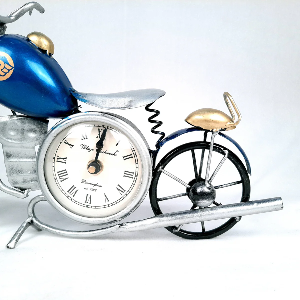 Featuring a clear analog dial and a sturdy metal body, this table clock blends functionality with decorative appeal. Its unique design makes it ideal for living rooms, offices, cafés, and gifting purposes, especially for bike lovers and décor enthusiasts.